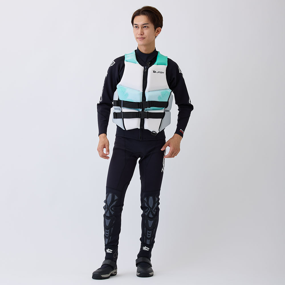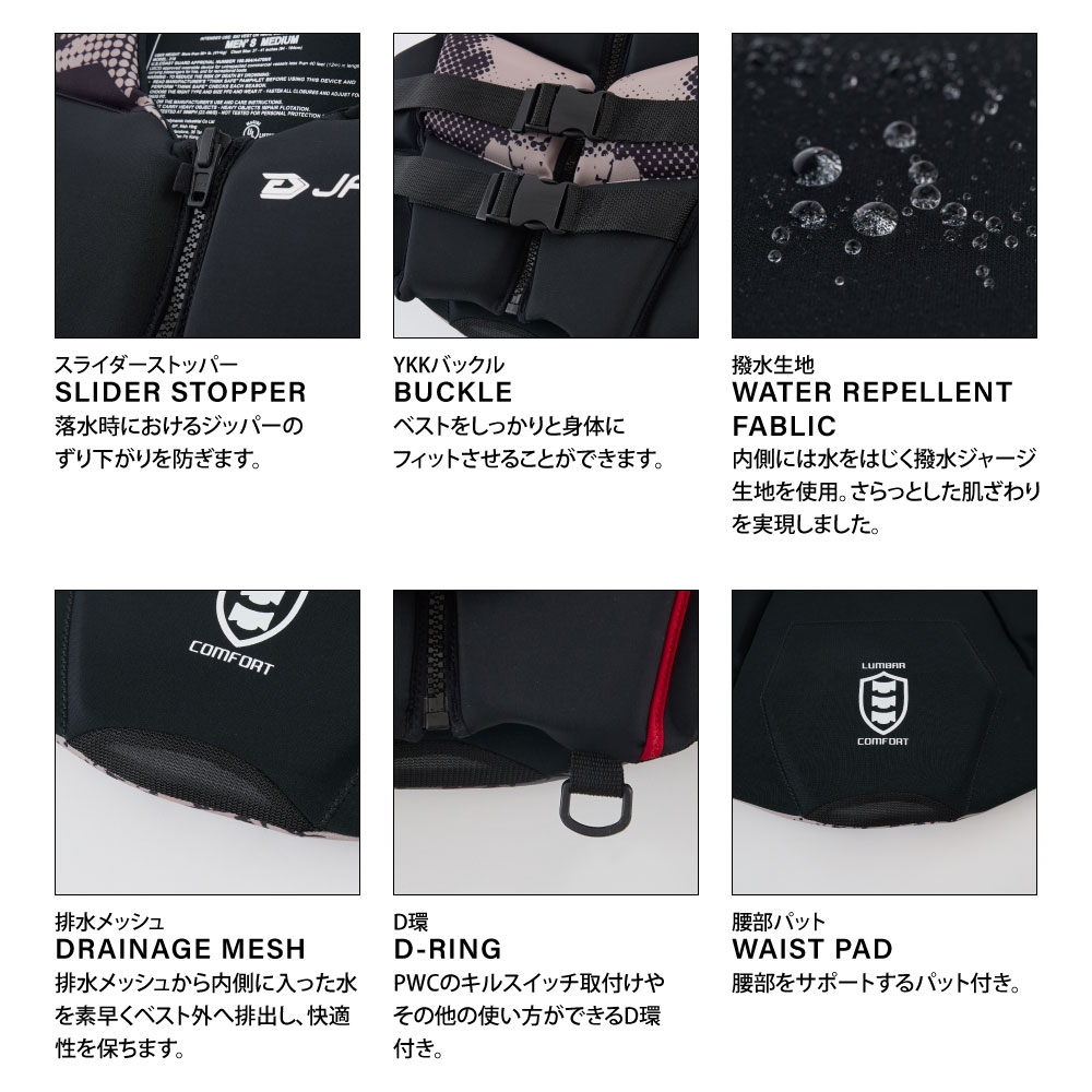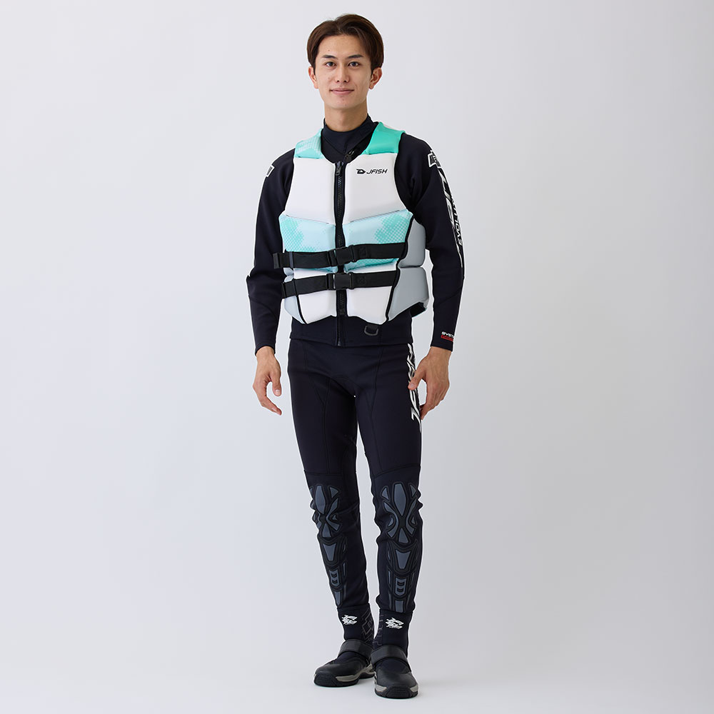 ●浮力は7.5kg以上あり、国土交通省が定める救命胴衣の安全基準に適合するライフジャケットです。