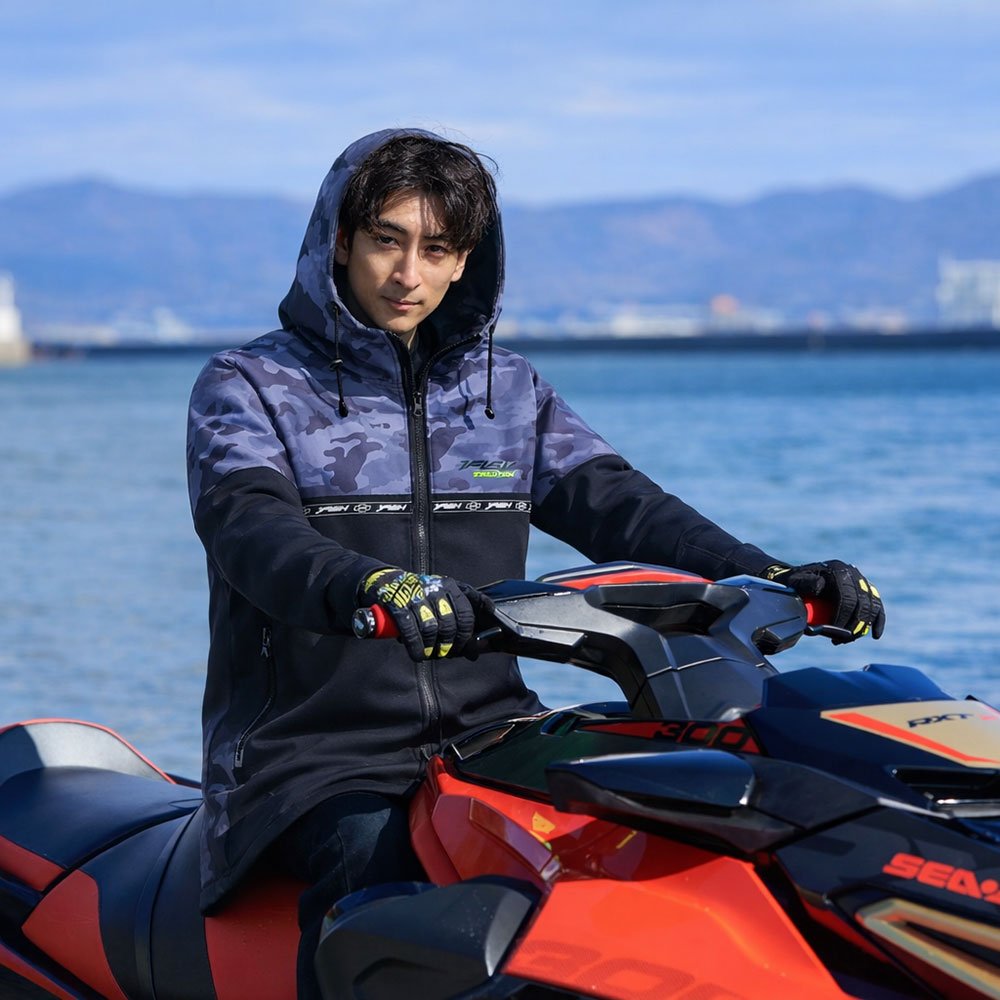 ●水の上、または陸に上がった時に風・水・寒さから体を守ってくれるスタイリッシュなネオプレンジャケット。