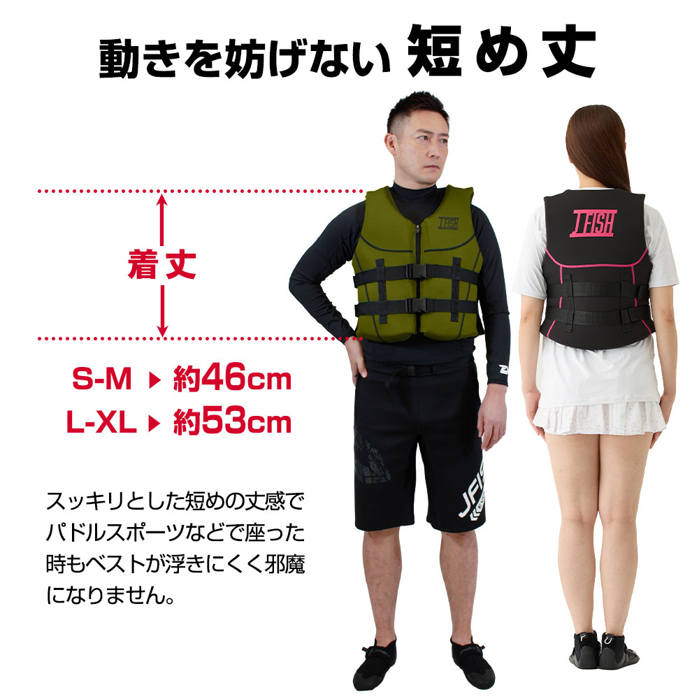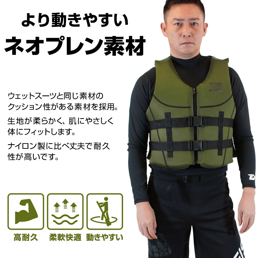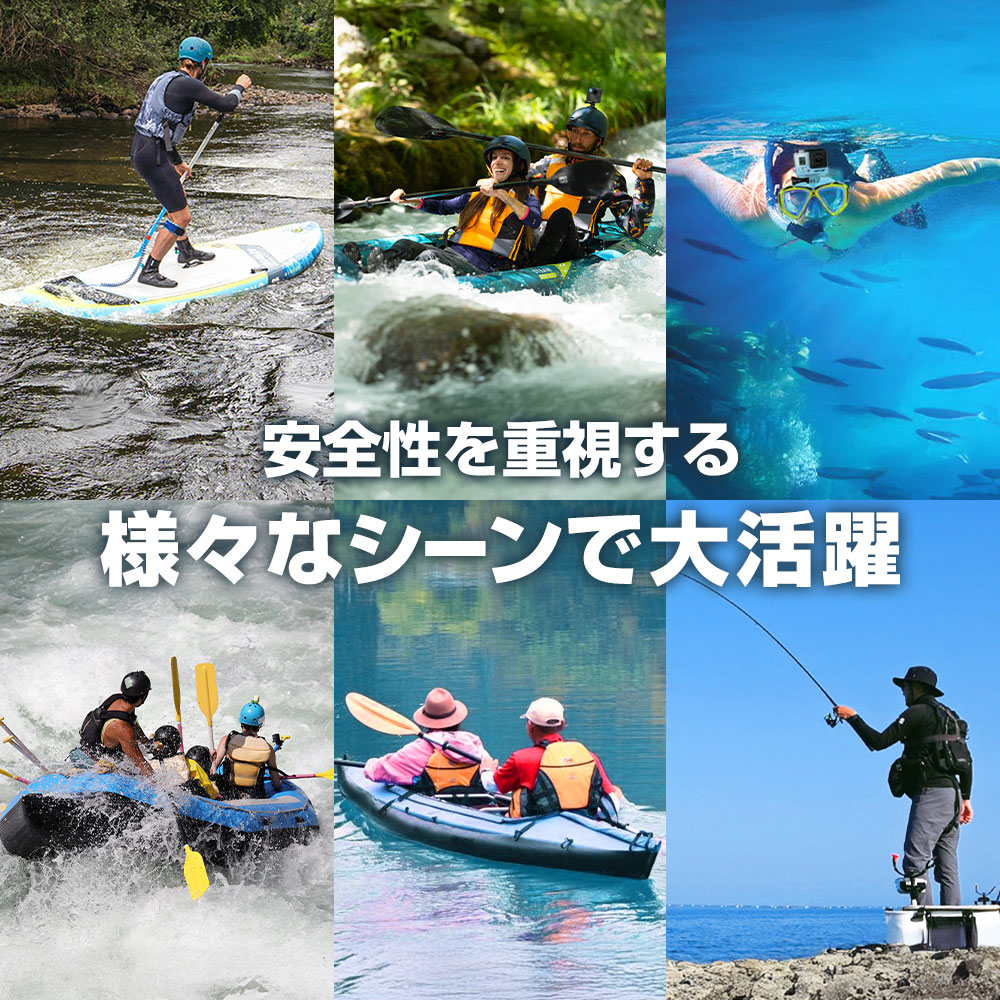 ●国土交通省が定める基準よりもかなり余裕を持った浮力がありますので、水辺に不慣れな方、泳ぎに自信がない方に最適なライフジャケットです。